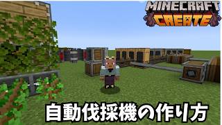 MinecraftのCreate Modで全自動木材生産&アイテム仕分けシステムを構築する方法を解説。メカニカルソー、デプロイヤー、コンベアなどを活用した効率的なファームの作り方を学べます。