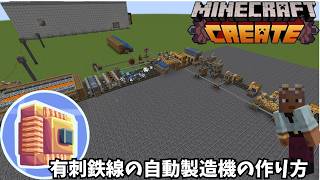 MinecraftのCreate ModとCreate & Additionsアドオンを使って、有刺鉄線を全自動で効率良く生産する工場ラインを構築する方法を解説。材料の自動生成から最終製品のクラフトまで、詳細な手順と機械の役割を紹介します。
